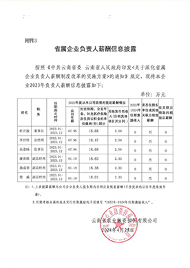 云南省農業(yè)融資擔保有限公司2023年負責人薪酬披露表