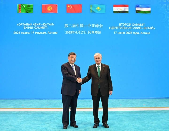 當地時間6月17日下午,第二屆中國—中亞峰會在阿斯塔納獨立宮舉行。哈薩克斯坦總統托卡耶夫主持會議。中國國家主席習近平、吉爾吉斯斯坦總統扎帕羅夫、塔吉克斯坦總統拉赫蒙、土庫曼斯坦總統別爾德穆哈梅多夫、烏茲別克斯坦總統米爾濟約耶夫出席。元首們在友好氣氛中共同回顧西安峰會以來中國—中亞各領域合作成果,展望未來發展方向,一致決定弘揚“中國—中亞精神”,堅持永久睦鄰友好,攜手推動中國—中亞命運共同體建設不斷取得新成就。