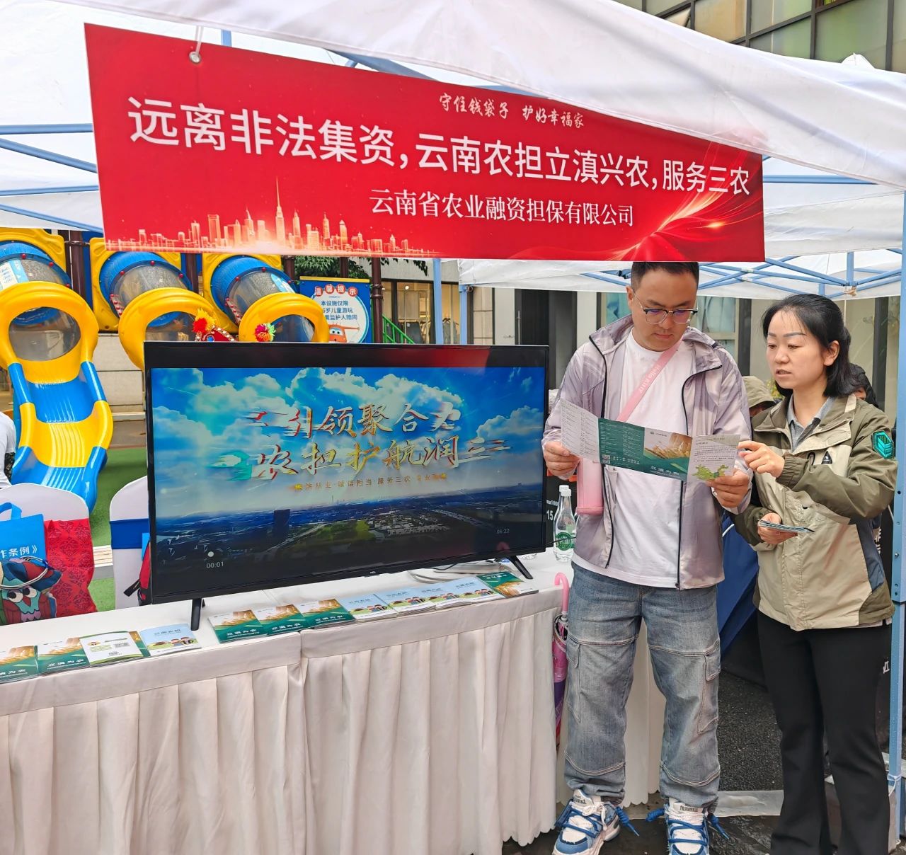 省農擔公司設立專門咨詢臺,通過發放業務宣傳折頁,播放公司宣傳片,積極為參與群眾講解農業融資擔保政策。用通俗易懂的語言,結合“虛假農業項目融資”和“虛假擔保”等典型案例,為老百姓深度剖析非法集資分子利用群眾對政策不熟悉、渴望低成本融資等心理實施詐騙的套路;并現場提醒群眾:“選擇農業擔保服務,認準云南農擔官方渠道”,引導群眾通過正規擔保機構獲取金融服務,切實保護自身合法權益。