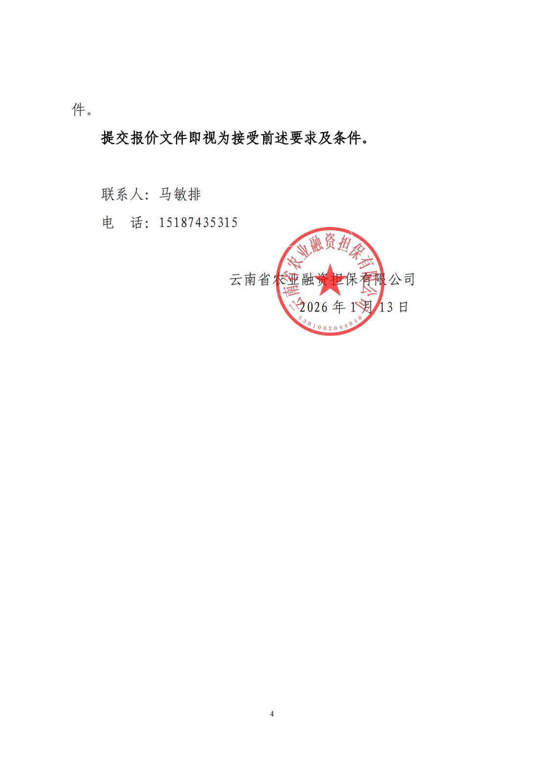 云南省農(nóng)業(yè)融資擔(dān)保有限公司詢價公告