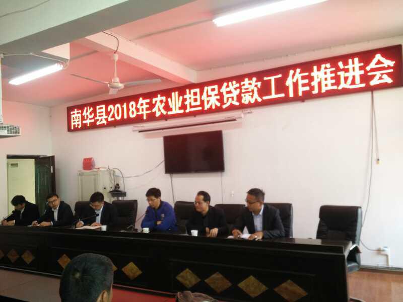 為準(zhǔn)確對接客戶,加快業(yè)務(wù)落地,2018年3月27日,公司楚雄辦事處聯(lián)合楚雄州南華縣農(nóng)業(yè)局組織召開南華縣2018年農(nóng)業(yè)擔(dān)保貸款工作推進(jìn)會。南華縣70戶養(yǎng)殖大戶、南華縣農(nóng)商行、郵儲銀行南華縣龍城支行、農(nóng)行南華縣支行、南華興福村鎮(zhèn)銀行主要負(fù)責(zé)同志受邀參加會議。