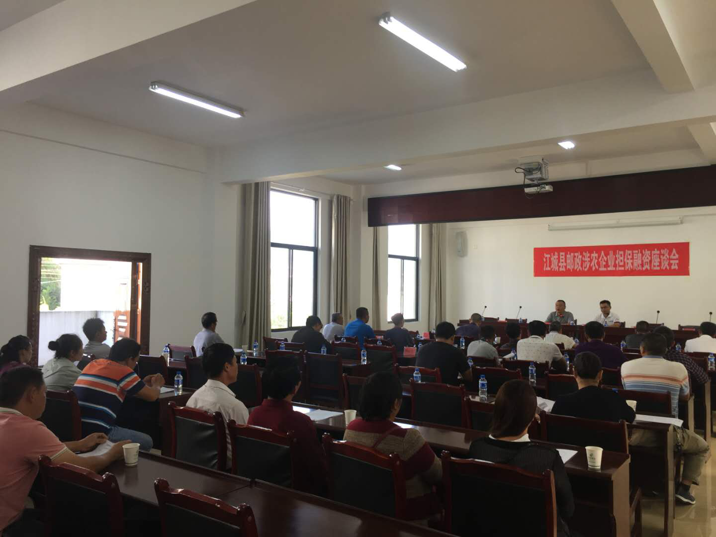 2018年9月21日,為響應(yīng)8月中旬整董會議精神,經(jīng)1個月多方籌備后,公司普洱辦事處戴維應(yīng)邀到江城縣參加郵儲銀行舉辦的“銀企座談會”,與江城縣郵儲負(fù)責(zé)人普及進(jìn)行業(yè)務(wù)政策宣講,江城縣上百家涉農(nóng)企業(yè)參加座談。會上,普洱辦事處戴維就公司成立背景、政策方向、服務(wù)范圍、當(dāng)前業(yè)務(wù)開展進(jìn)度和業(yè)務(wù)流程等進(jìn)行講解,現(xiàn)場與客戶聯(lián)動,針對公司準(zhǔn)入具體標(biāo)準(zhǔn)、資料準(zhǔn)備要素、房產(chǎn)、林權(quán)等反擔(dān)保物標(biāo)準(zhǔn)等具體問題進(jìn)行解釋說明,現(xiàn)場達(dá)成意向貸款戶89戶,意向金額3700萬元,計(jì)劃國慶收假后普洱辦事處與銀行聯(lián)合盡調(diào)項(xiàng)目,爭取10月底將項(xiàng)目落地。