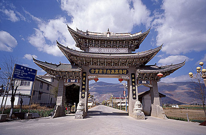新華村位于大理州鶴慶縣西北部鳳凰山腳下,一個集田園風(fēng)光、民居、民俗和民族手工藝品生產(chǎn)加工為一體的白族村寨,符合農(nóng)業(yè)觀光定義分類中的觀光副業(yè)(與農(nóng)業(yè)相關(guān)的具有地方特色的工藝品及其加工制作過程)。新華村依山旁水,是依原生態(tài)自然村落建成的文化旅游區(qū),轄區(qū)有1166戶,海拔在2000―2300米之間,位于鶴慶縣城西北部,距麗江39公里,白族占總?cè)?8.5%,是一個典型的白族寨子。2001年,新華村因其悠久的手工藝文化、獨特的民風(fēng)民俗及優(yōu)美的田園風(fēng)光被國家文化部、中國村社發(fā)展促進會分別命名為"中國民間藝術(shù)之鄉(xiāng)"和"中國民俗文化村",2006年,新華村又榮獲"云南十大名鎮(zhèn)"的稱號。新華村的"小爐匠"自唐代南詔國時期就開始加工金銀銅等金屬手工藝品,至今已有一千多年的歷史。新華村兼有優(yōu)美的自然景觀,周圍山水交相輝映,地下水儲量豐富,行政區(qū)境內(nèi)的萬畝草海濕地和清澈甘醇的農(nóng)家泉眼。獨具地方民族特色的建筑風(fēng)格,豐富清澈的水域,既不乏江南水鄉(xiāng)的柔美,更具有高原獨特的水鄉(xiāng)情結(jié)。2009年12月28日,國家旅游局正式批準(zhǔn)"銀都水鄉(xiāng)"新華村為國家4A級旅游行政區(qū)。