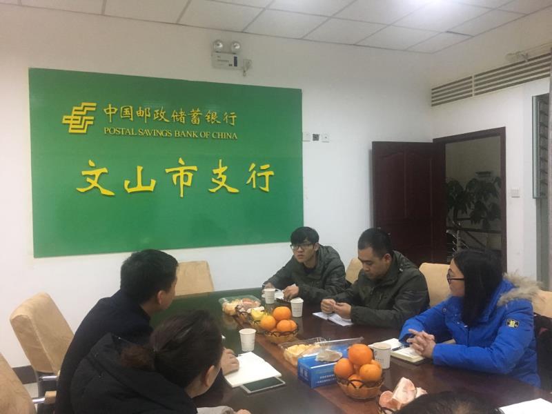 2019年1月8日,文山辦事處全體員工受邀到中國郵政儲蓄銀行文山市支行進行座談,中國郵政儲蓄銀行文山州分行三農(nóng)金融部總經(jīng)理、文山市支行行長李洪,文山市支行信貸部主任李順成以及信貸客戶經(jīng)理參加座談。