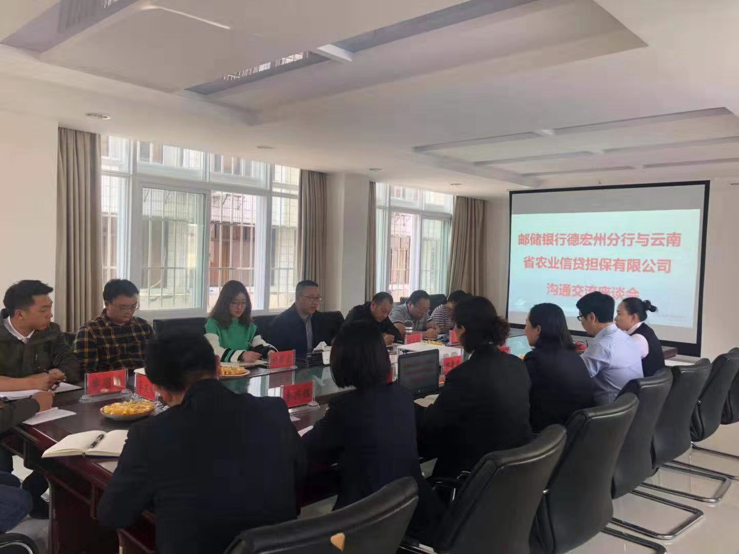 農(nóng)擔(dān)公司副總經(jīng)理廖寅皓一行攜德宏辦事處人員至郵儲(chǔ)銀行德宏州分行進(jìn)行交流座談