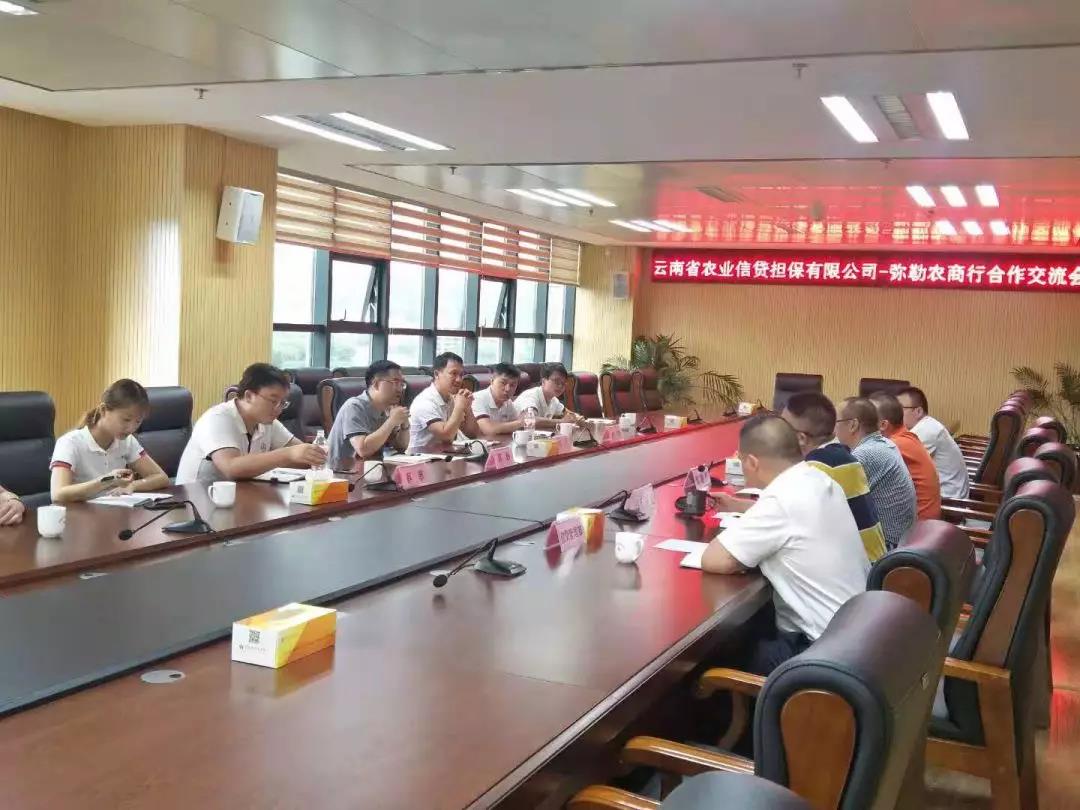 7月30日下午,公司調(diào)研組率紅河辦事處、彌勒辦事處業(yè)務(wù)主管到中國(guó)農(nóng)業(yè)銀行紅河州分行開展業(yè)務(wù)座談,農(nóng)業(yè)銀行紅河州分行行長(zhǎng)朱旭鵬、副行長(zhǎng)楊增偉、副行長(zhǎng)李波、三農(nóng)金融部總經(jīng)理丁俊洪以及公司業(yè)務(wù)部、信用管理部業(yè)務(wù)骨干成員參加了座談。會(huì)上雙方緊緊圍繞“脫貧攻堅(jiān)”,加大對(duì)扶貧重點(diǎn)縣尤其是深貧縣的支持力度,緊扣“鄉(xiāng)村振興”主題,加大對(duì)紅河北部地區(qū),尤其是蒙自、開遠(yuǎn)、建水、彌勒、瀘西等現(xiàn)代農(nóng)業(yè)初見雛形縣市的支持力度,并希望雙方能從零、敲、碎、打到產(chǎn)品業(yè)務(wù)創(chuàng)新,加快業(yè)務(wù)向線上化、標(biāo)準(zhǔn)化產(chǎn)品發(fā)展。