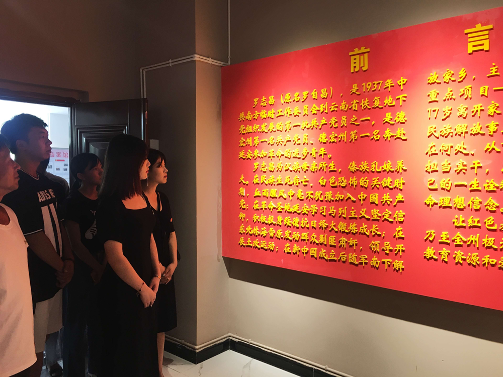 活動中,全體黨員干部在胡幫露同志的帶領下重溫入黨誓詞。在講解員的引導和解說下,參觀學習了羅志昌革命史實陳列室,了解了黨在德宏州的發(fā)展歷史、并從“和諧家庭,少年立志”、“求學上進,秘密入黨”、“延安深造、綏德成長”、“云南解放回鄉(xiāng)建設”四方面學習了羅志昌同志一生為黨和人民解放事業(yè)奮斗的事跡。