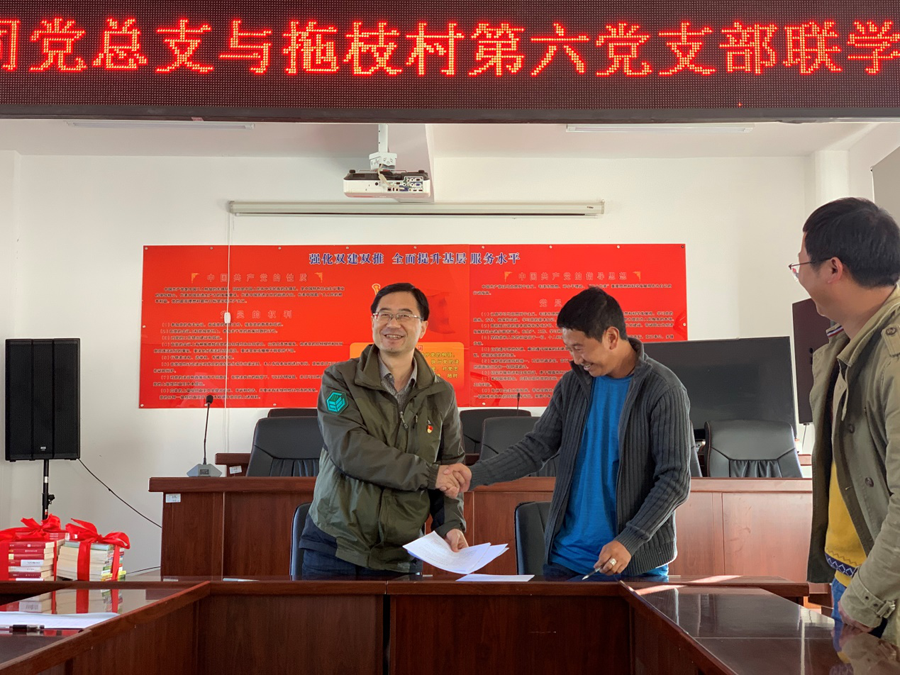 支部結(jié)對雙促進(jìn),共建共享強(qiáng)黨建。自公司黨組織成立以來,嚴(yán)格按照省財政廳機(jī)關(guān)黨委扶貧工作要求,農(nóng)擔(dān)公司黨(總)支部與永春鄉(xiāng)拖枝村第六黨支部開展了支部共建“雙一雙”學(xué)習(xí)教育、經(jīng)驗交流,10月22日公司黨總支書記郭影與拖枝村第六簽訂了黨支部結(jié)對共建協(xié)議書,并捐贈黨建和農(nóng)業(yè)科技方面讀書,把黨建工作與精準(zhǔn)扶貧工作相結(jié)合,充分發(fā)揮農(nóng)擔(dān)公司黨組織全心支農(nóng)、為農(nóng)、惠農(nóng)、不脫農(nóng)的先鋒模范作用,以黨建推動脫貧攻堅,以脫貧攻堅促進(jìn)支部黨建,促進(jìn)了扶貧工作與黨建工作的良性互動。