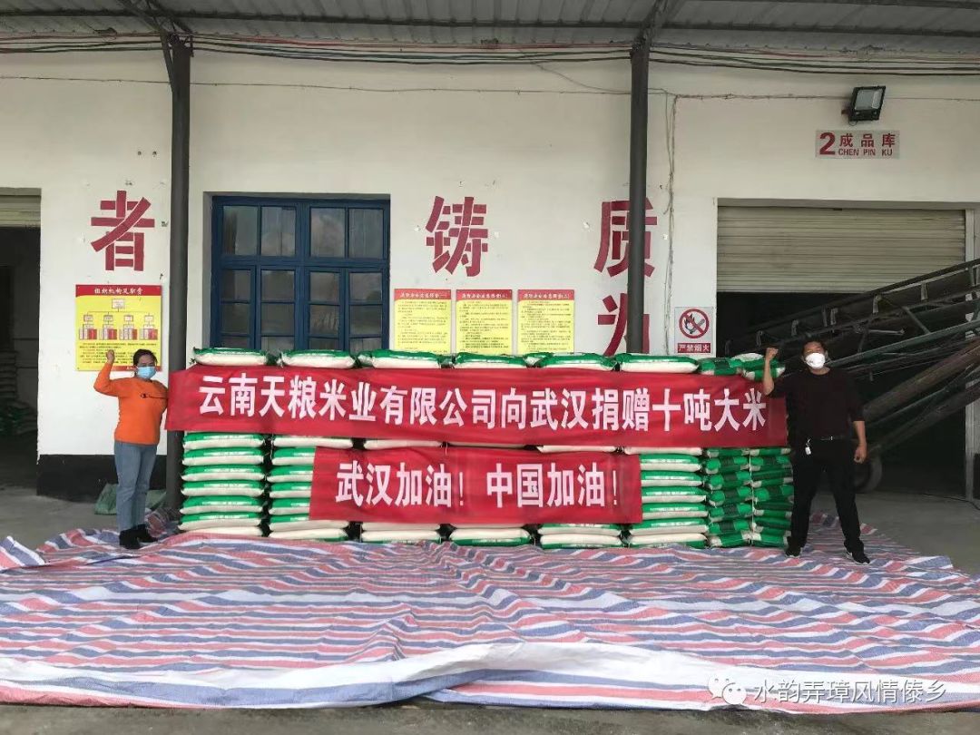 公司在??蛻粼颇咸旒Z米業(yè)有限公司作為弄璋鎮(zhèn)本土的大米加工企業(yè),不忘企業(yè)的社會(huì)責(zé)任,帶頭捐贈(zèng)10噸大米,同時(shí),我公司在保客戶李麗江、李開燦等人紛紛向武漢捐贈(zèng)大米與土豆等農(nóng)作物,馳援湖北疫區(qū)。