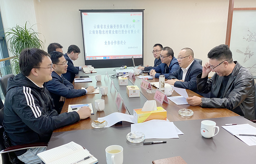 為加快推進(jìn)全省復(fù)工復(fù)產(chǎn)、全面恢復(fù)經(jīng)濟(jì)社會(huì)秩序,云南農(nóng)擔(dān)公司積極協(xié)同合作銀行加大對(duì)農(nóng)業(yè)項(xiàng)目的擔(dān)保貸款投放,扎扎實(shí)實(shí)解決新型農(nóng)業(yè)經(jīng)營主體“融資難”問題。4月,公司繼續(xù)“下基層、走一線”,郭影董事長攜戰(zhàn)略發(fā)展部、農(nóng)擔(dān)業(yè)務(wù)相關(guān)同志分別至彌勒、玉溪等地調(diào)研。