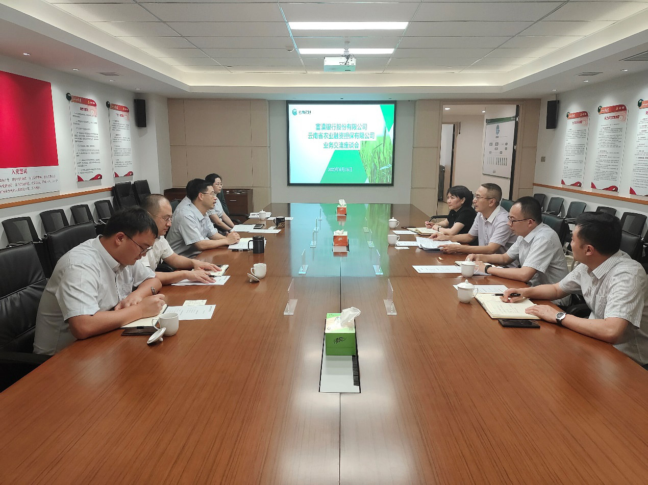 6月16日,云南農(nóng)擔公司與富滇銀行召開業(yè)務交流座談會。富滇銀行納然副行長、普惠金融部、昆明國防支行,農(nóng)擔公司郭影董事長、杜開波總經(jīng)理、風險控制部、計劃財務部、戰(zhàn)略發(fā)展部參加了會議。