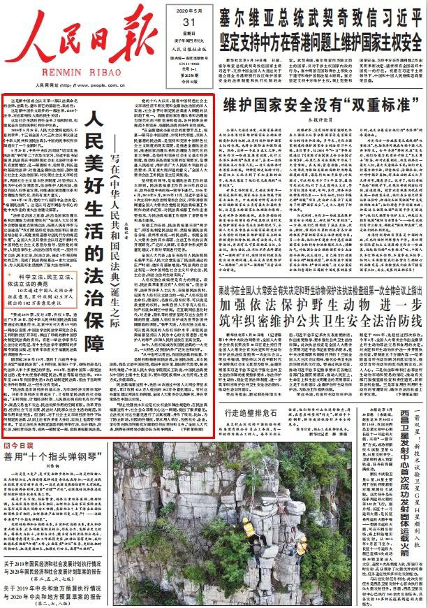 “法律是治國之重器,法治是國家治理體系和治理能力的重要依托”“全國人大及其常委會要加強重點領域立法,拓展人民有序參與立法途徑”“我們要堅持把依法治國和以德治國結(jié)合起來,高度重視道德對公民行為的規(guī)范作用”。全國人大及其常委會以習近平新時代中國特色社會主義思想為指導,堅持黨的領導、人民當家作主、依法治國有機統(tǒng)一,堅持科學立法、民主立法、依法立法,通過5年艱苦細致的工作,完成了民法典編纂這一重大立法任務,為人民美好生活提供了強大法治保障。