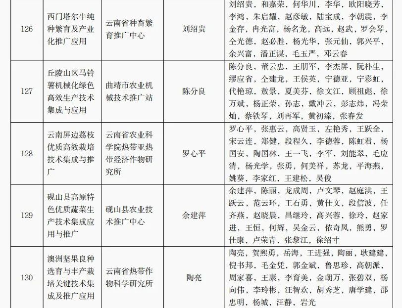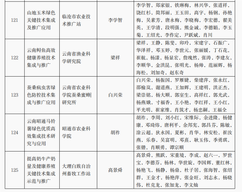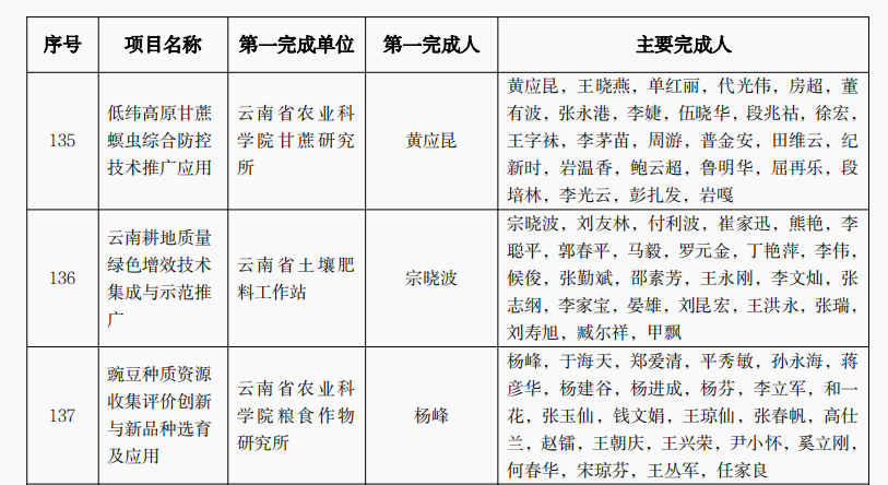 授予“湖南省早稻集中育秧技術(shù)推廣”等81個項目為農(nóng)業(yè)技術(shù)推廣成果獎一等獎,“循環(huán)水工程化智能化養(yǎng)殖關(guān)鍵技術(shù)示范應(yīng)用與推廣”等160個項目為農(nóng)業(yè)技術(shù)推廣成果獎二等獎,“河西肉牛生態(tài)健康養(yǎng)殖技術(shù)集成與示范”等160個項目為農(nóng)業(yè)技術(shù)推廣成果獎三等獎;授予吉林省伊通滿族自治縣景臺鎮(zhèn)綜合服務(wù)中心鄭立晨等500人農(nóng)業(yè)技術(shù)推廣貢獻獎;授予“大豆-玉米帶狀復(fù)合種植技術(shù)模式集成創(chuàng)新與示范推廣”等20個項目為農(nóng)業(yè)技術(shù)推廣合作獎(獲獎名單詳見附件)。