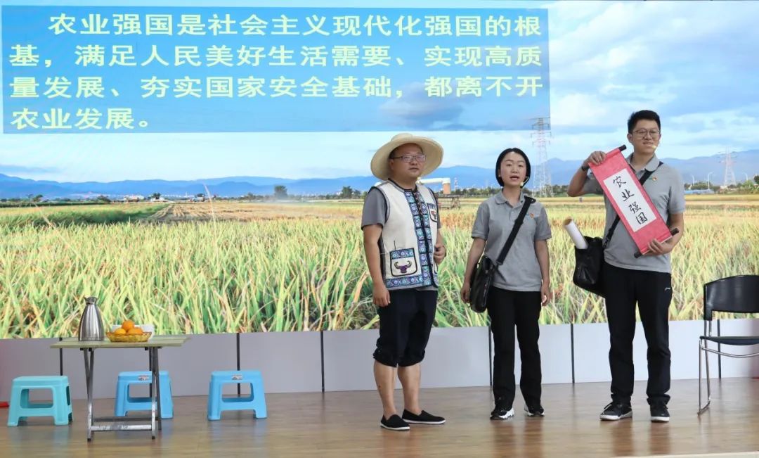 《鄉村振興進行時 云南農擔盡出戰》黨課以情景劇形式展示了公司學習貫徹習近平新時代中國特色社會主義思想和黨的二十大精神的最新成果。黨課由張長浩、蔣赟、菊志俊等3名同志表演,以深入麗江市永勝縣濤源鎮上甘坪村開展調查研究、實施擔保項目管理為切入點,把黨的二十大精神、國家農業信貸擔保政策送入田間地頭、送入廣大新型農業經營主體手中。黨課生動直觀,接地氣、振志氣,有較強感染力和表現力,展現了省農擔公司員工在習近平新時代中國特色社會主義思想和黨的二十大精神引領下,朝氣蓬勃、昂揚向上的精神風貌。