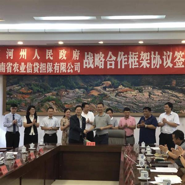 8月21日上午云南省農(nóng)業(yè)信貸擔(dān)保有限公司與紅河州人民政府戰(zhàn)略合作協(xié)議簽訂暨公司紅河辦事處、彌勒辦事處授牌儀式在紅河州會堂正式舉行。