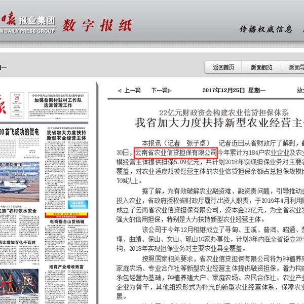 云南省加大力度扶持新型農業經營主體 22億元財政資金構建農業信貸擔保體系