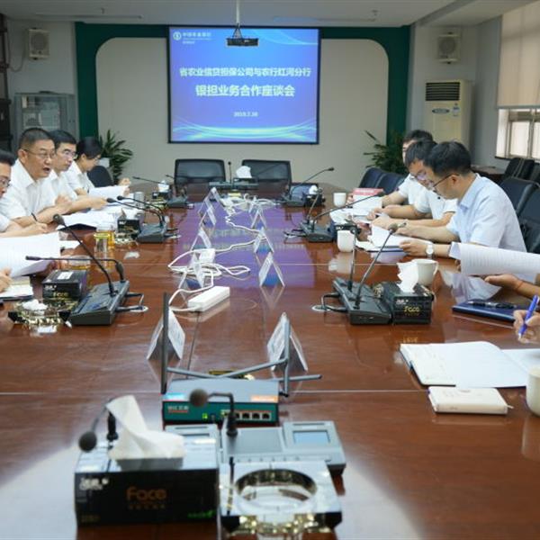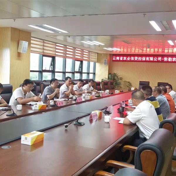 7月30日,云南農(nóng)擔董事長郭影攜戰(zhàn)略發(fā)展部負責人蔡菲、農(nóng)擔一部負責人劉川、紅河辦事處和彌勒辦事處到中國農(nóng)業(yè)銀行紅河州分行開展業(yè)務座談。