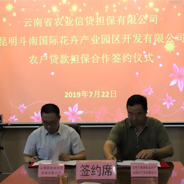 7月22日,公司業(yè)務副總廖寅皓攜農(nóng)擔二部負責人賈萬文,農(nóng)擔二部陳茜,尋甸辦事處趙沙沙到昆明斗南國際花卉園區(qū)開發(fā)有限公司進行合作協(xié)議簽約儀式。
