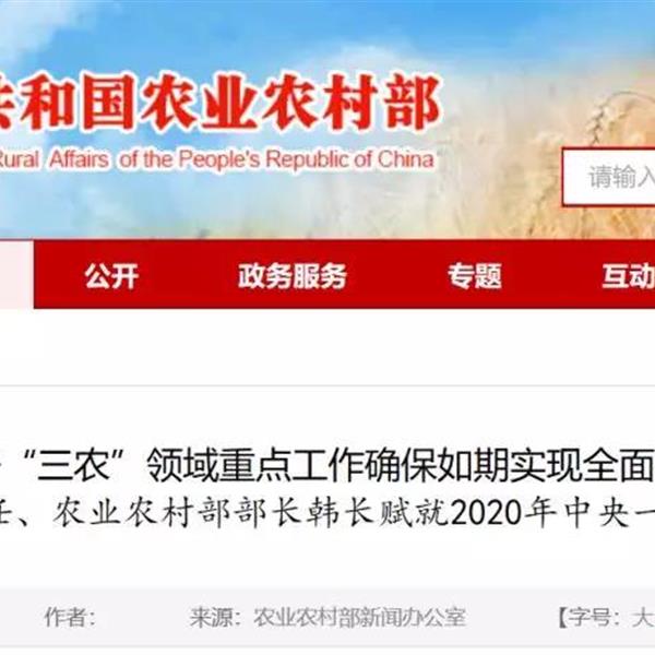 中央農(nóng)辦主任、農(nóng)業(yè)農(nóng)村部部長韓長賦就2020年中央一號(hào)文件答記者問